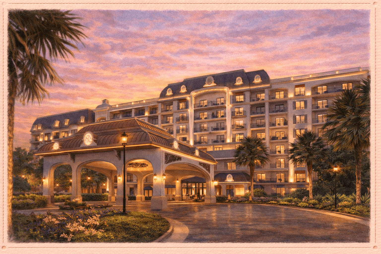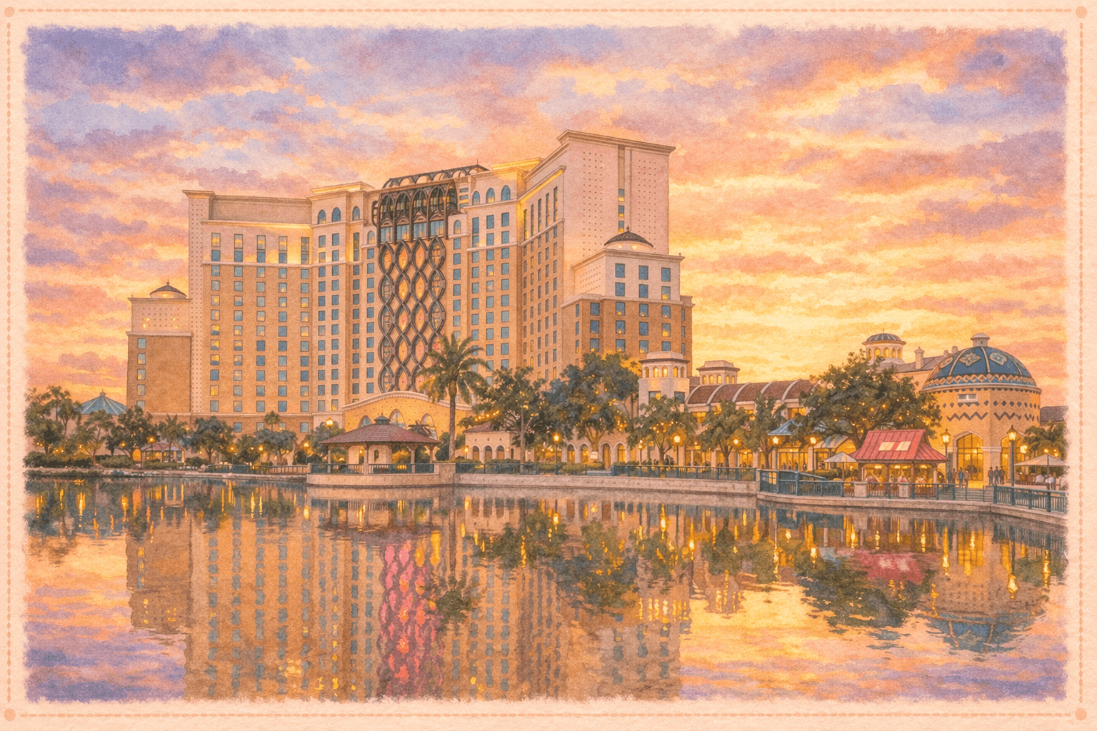 Use the interactive tool below to compare every on-property hotel side by side. Filter by budget, sort by price or room size, and find the best fit for your family.